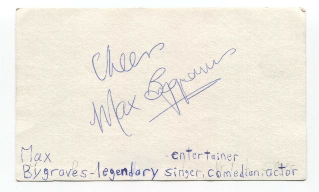 Up for sale is an autographed 3x5 index card, boldly signed by Max Bygraves. Autograph was part of an enormous collection of over 9000 in person collected signatures that I was fortunate to purchase in it's entirety.