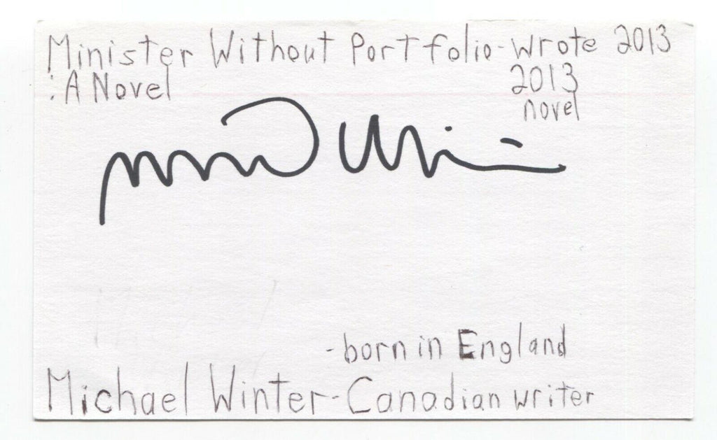 Up for sale is an autographed 3x5 index card, boldly signed by author Michael Winter.