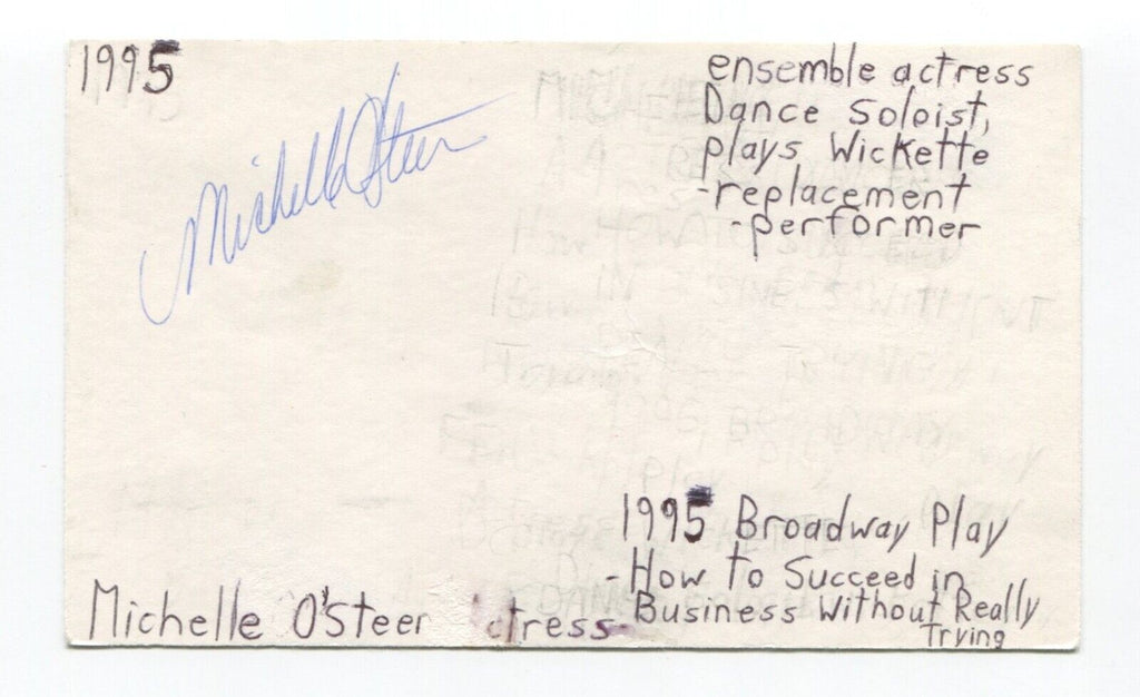 Michelle O'Steer Signed 3x5 Index Card Autographed Actress How To Succeed