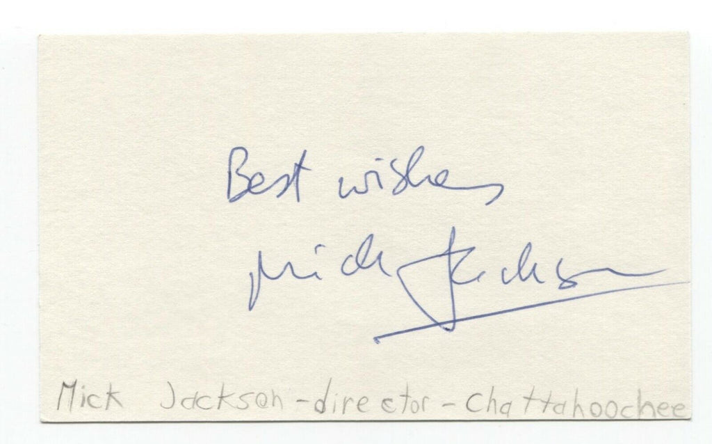 Up for sale is an autographed 3x5 index card, boldly signed by Mick Jackson.  Autograph was part of an enormous collection of over 9000 in person collected signatures.