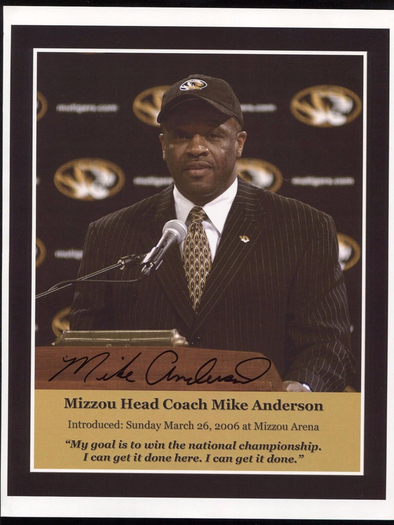 Up for sale is a signed 8x10 photo of NCAA basketball coach Mike Anderson. Nice, bold autograph on a great image of him. Photo was part of a very large collection of NCAA autographs that were obtained in the mid 2000's that I was fortunate to purchase in it's entirety.