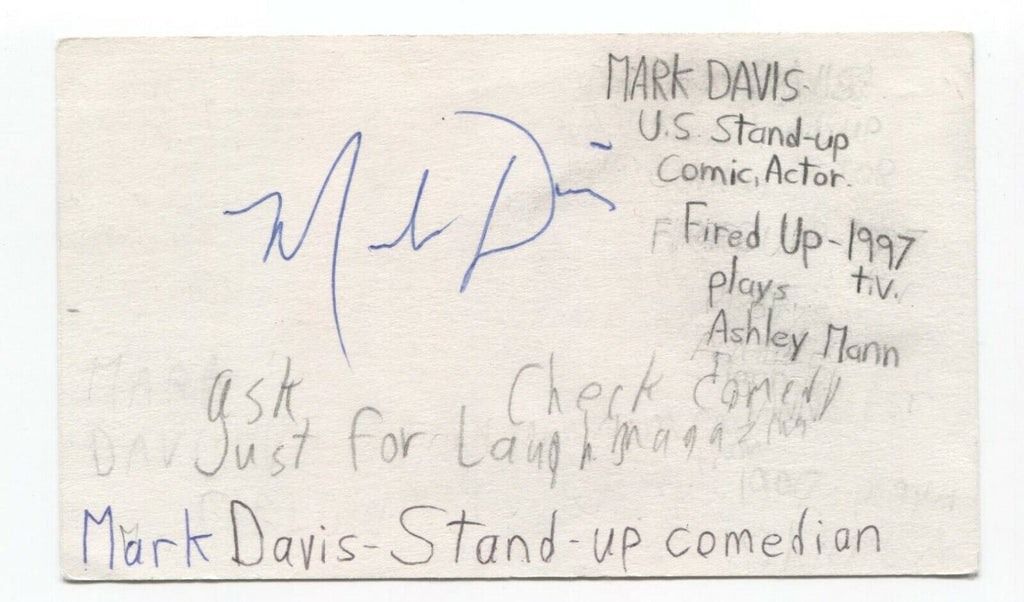 Up for sale is an autographed 3x5 index card, boldly signed by comedian Mike Davis. This autograph was part of an enormous collection of over 9000 in person collected signatures.