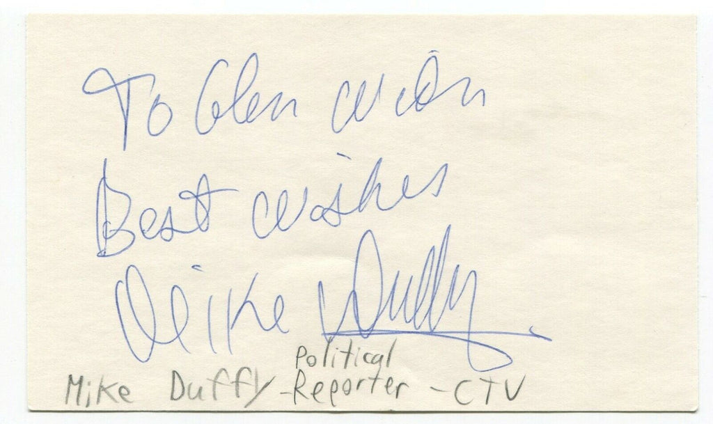 Mike Duffy Signed 3x5 Index Card Autographed Signature Reporter Politician