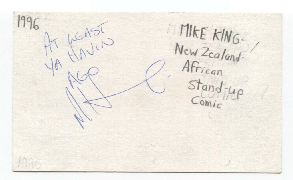 Up for sale is an autographed 3x5 index card, boldly signed comedian Mike King.