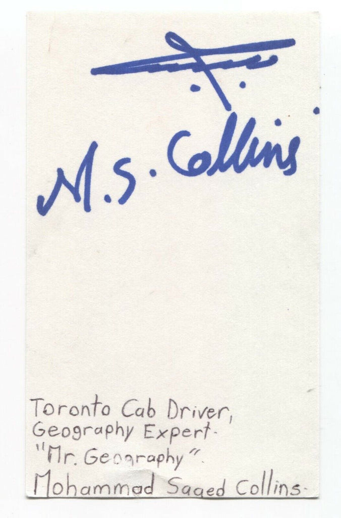 Mohammad Saaed Collins Signed 3x5 Index Card Autograph Signature Mr. Geography