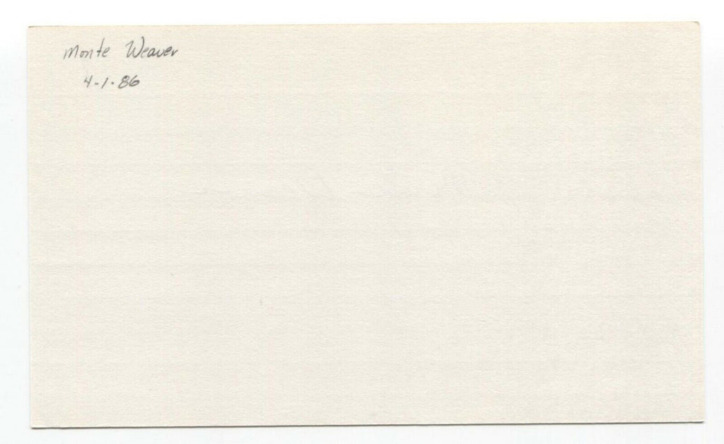 Monte Weaver Signed 3x5 Index Card Baseball Autographed Signature
