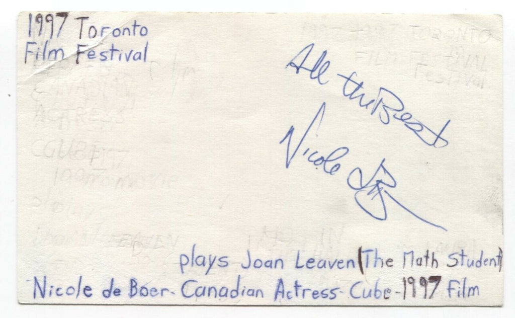 Up for sale is an autographed 3x5 index card, boldly signed by actress Nicole de Boer. This autograph was part of an enormous collection of over 9000 in person collected signatures.