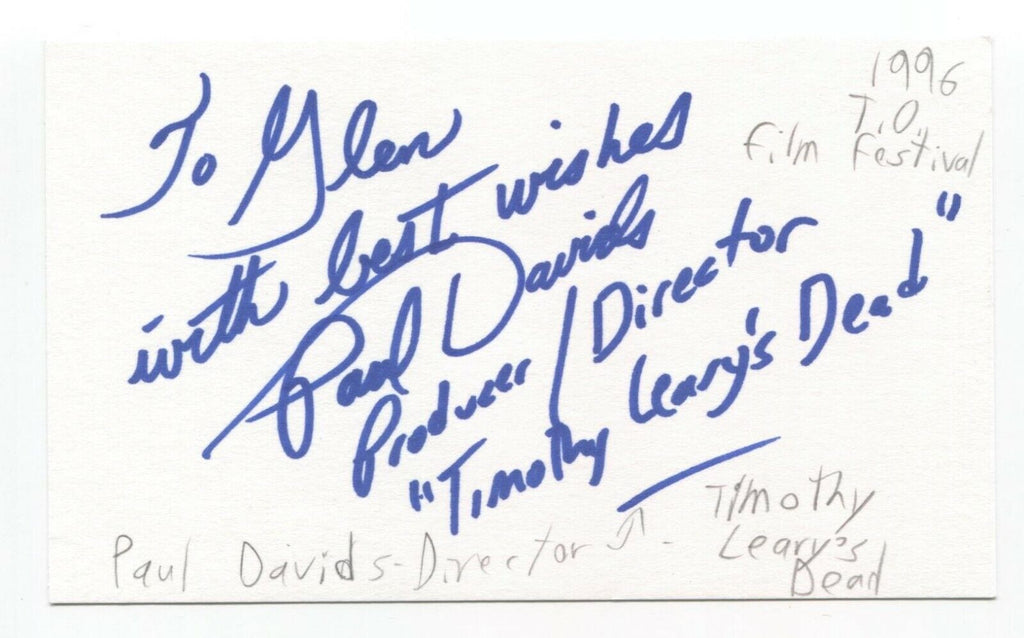 Paul Davids Signed 3x5 Index Card Autographed Signature Director Filmmaker