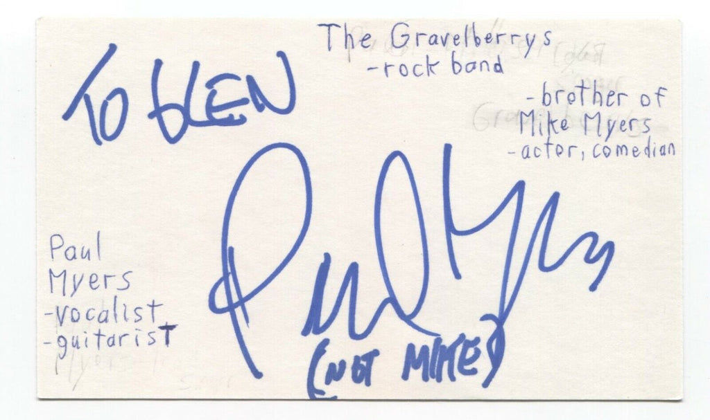 Paul Myers Signed 3x5 Index Card Autographed Signature The Gravelberrys