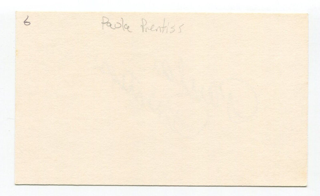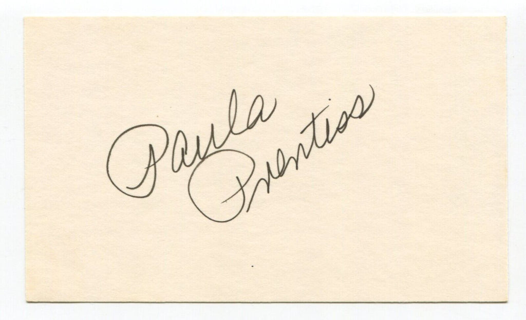 Up for sale is an autographed 3x5 index card, boldly signed by actress Paula Prentiss. Just a great looking autograph that will display nicely. Autograph was part of over 120 signed index cards mostly obtained in the 1980's and 1990's.