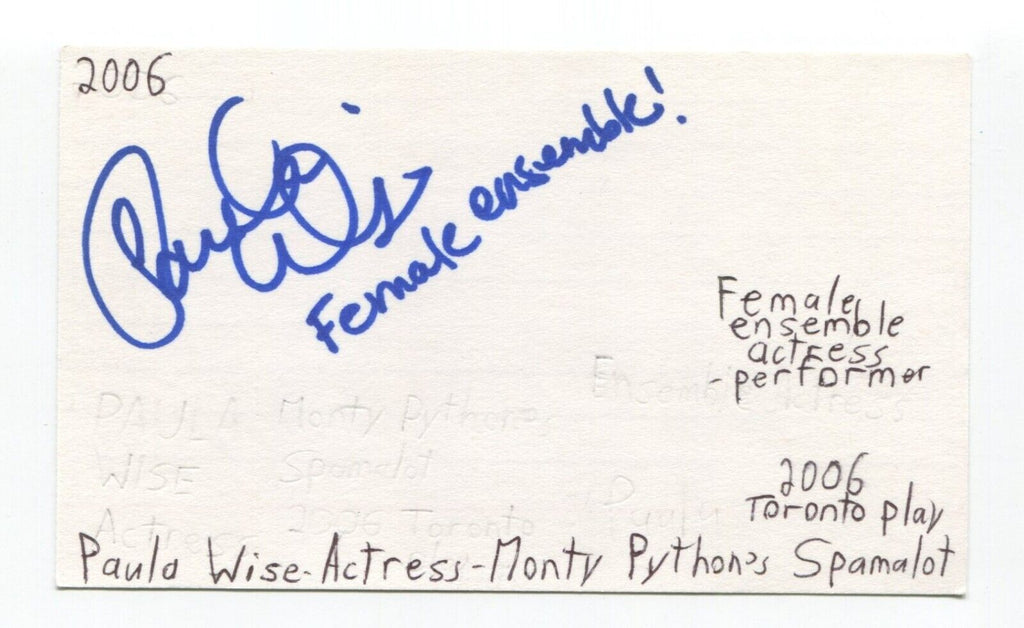 Paula Wise Signed 3x5 Index Card Autographed Actress Monty Python's Spamalot