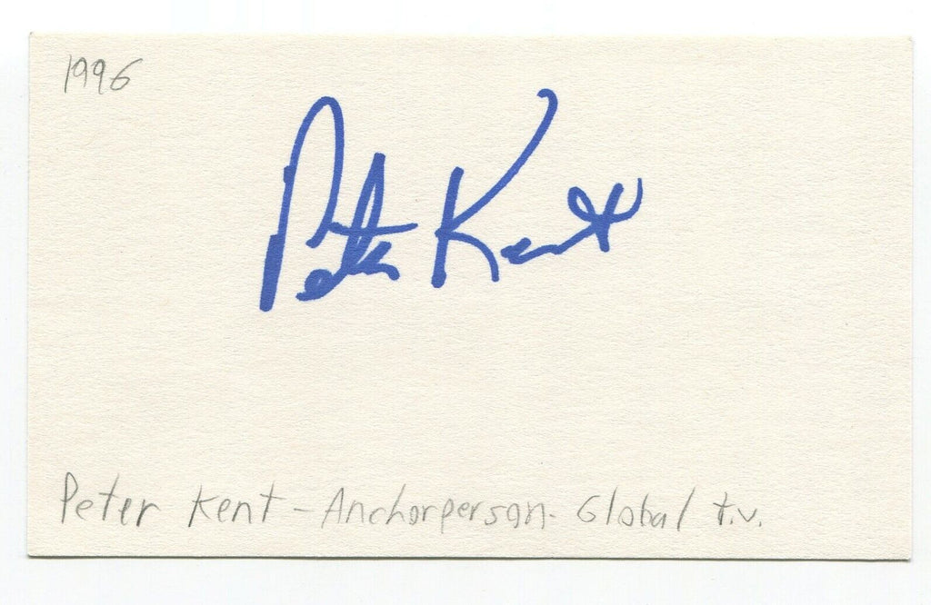 Up for sale is an autographed 3x5 index card, boldly signed by journalist Peter Kent.  Autograph was part of an enormous collection of over 9000 in person collected signatures that I was fortunate to purchase in it's entirety, that belonged to the great Glenn Marshall.