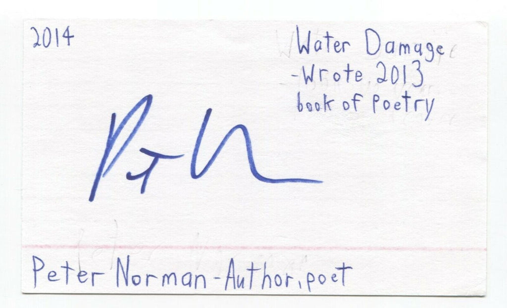 Peter Norman Signed 3x5 Index Card Autographed Signature Author Writer Poet
