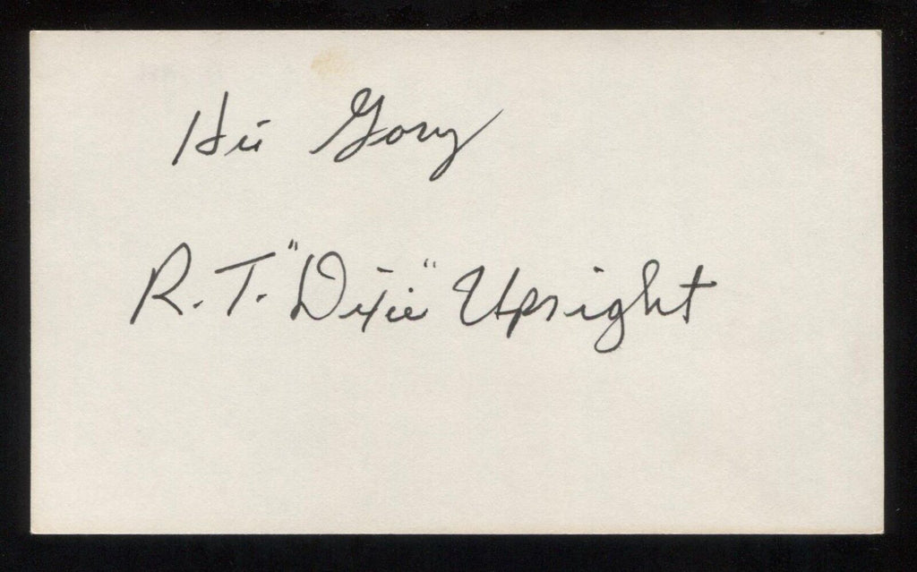 R.T. Dixie Upright Signed 3 x 5 Inch Index Card Autographed Baseball Signature