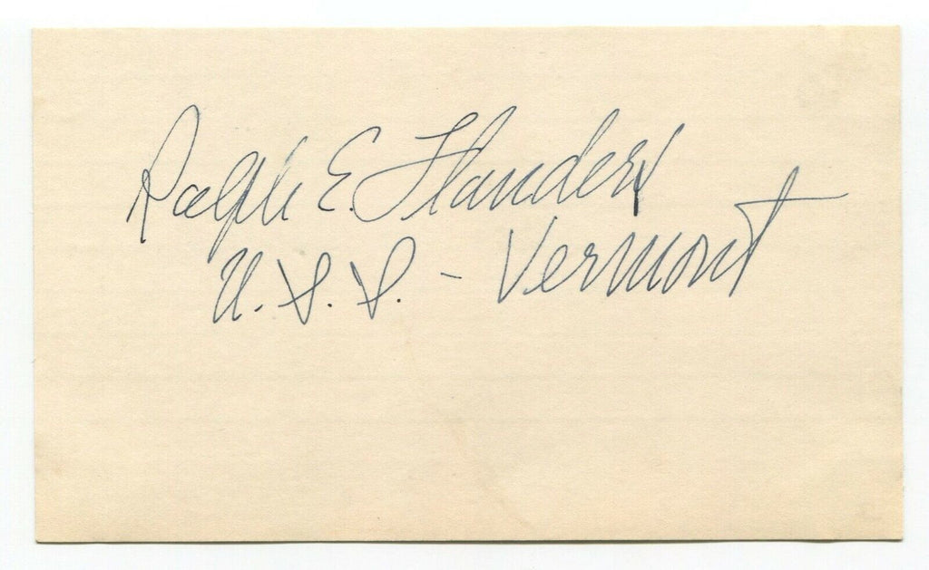 Ralph E. Flanders Signed 3x5 Index Card Autographed Signature Politician Senator