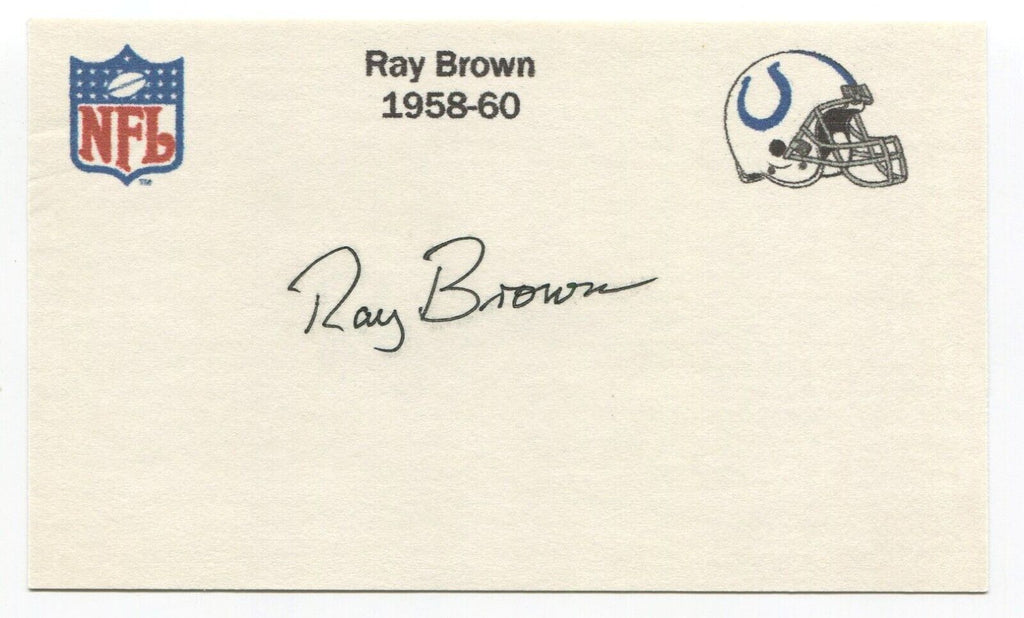 Ray Brown Signed 3x5 Index Card Autographed Baltimore Colts NFL Champion