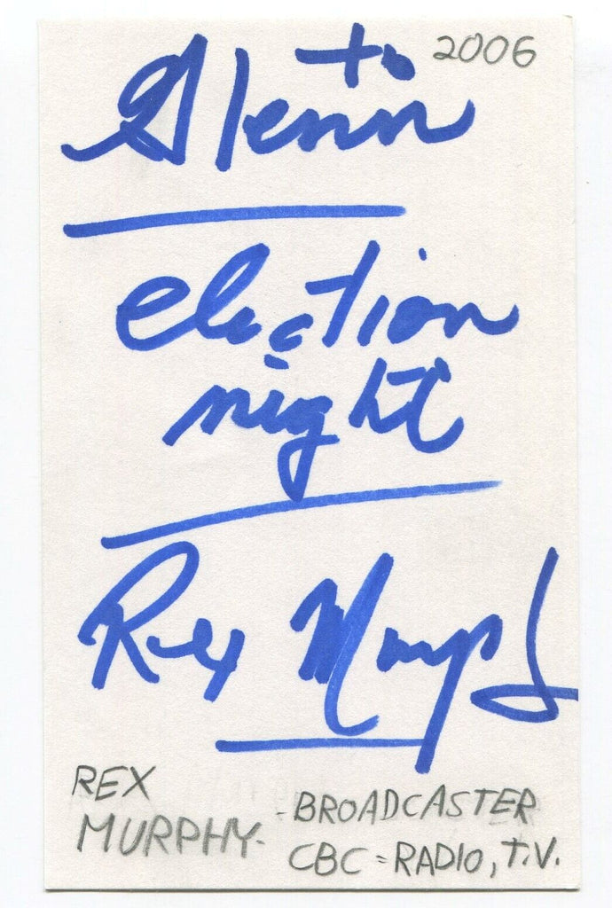 Rex Murphy Signed 3x5 Index Card Autographed Signature Reporter CBC Host