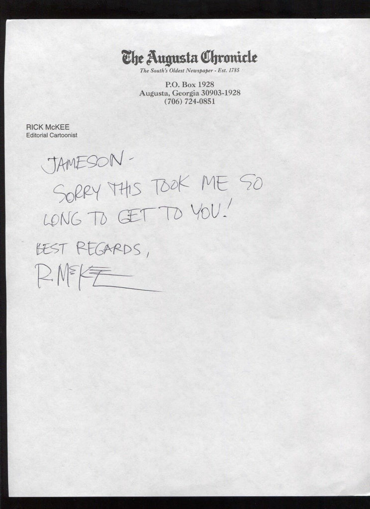 Rick McKee Signed Letter Autographed Signature Cartoonist