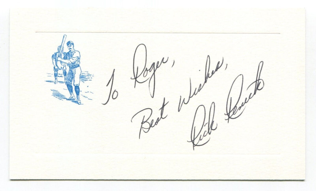 Up for sale is an autographed approximately 3.5 x 5.5 inch card, boldly signed by baseball player Rick Renick. Just a great looking autograph that will display nicely. Autograph was acquired by renowned autograph collector Roger Harris.