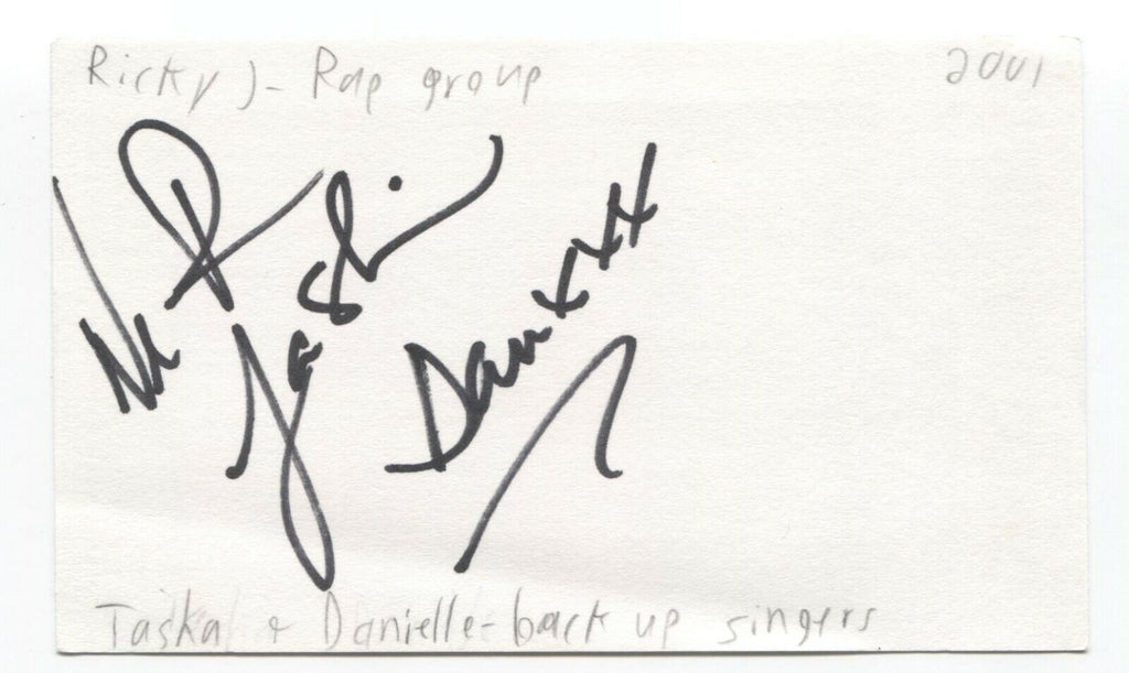 Ricky J - Tasha and Danielle Signed 3x5 Index Card Autographed Signature Band