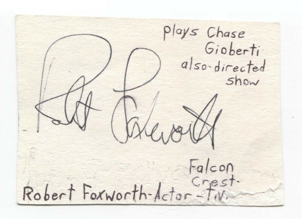 Up for sale is an autographed 3x5 index card, boldly signed by actor Robert Foxworth. This autograph was part of an enormous collection of over 9000 in person collected signatures.