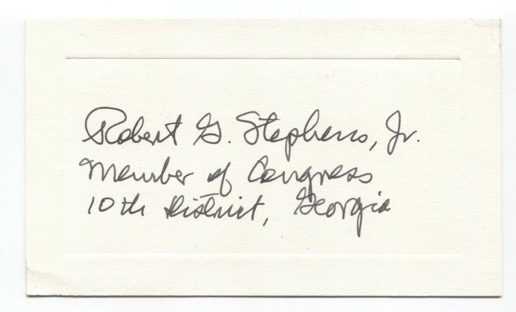Up for sale is a signed card, boldly autographed by politician Robert Grier Stephens Jr. Autograph was part of the well known single owner, original "Roger Harris" collection of thousands of autographs, acquired over many decades of collecting.