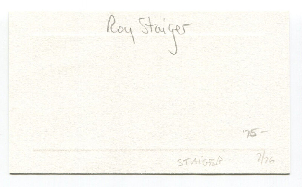 Up for sale is an autographed approximately 3.5 x 5.5 inch card, boldly signed by baseball player Roy Staiger. Just a great looking autograph that will display nicely. Autograph was acquired by renowned autograph collector Roger Harris.