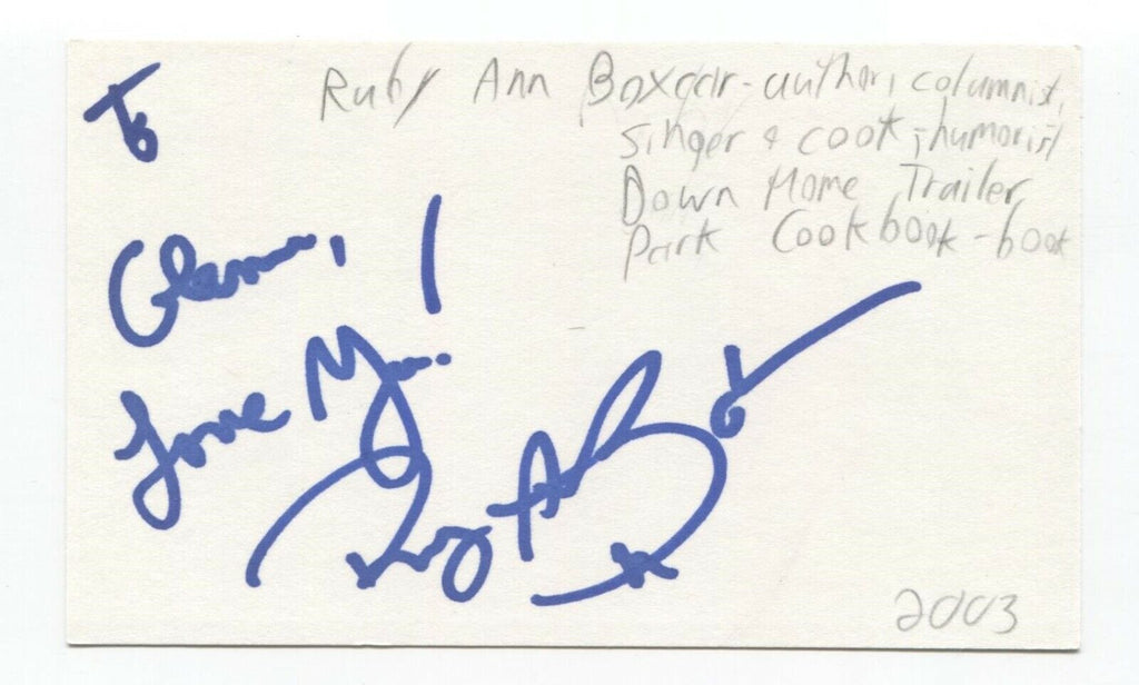 Ruby Ann Boxcar Signed 3x5 Index Card Autographed Signature Author Writer Cook