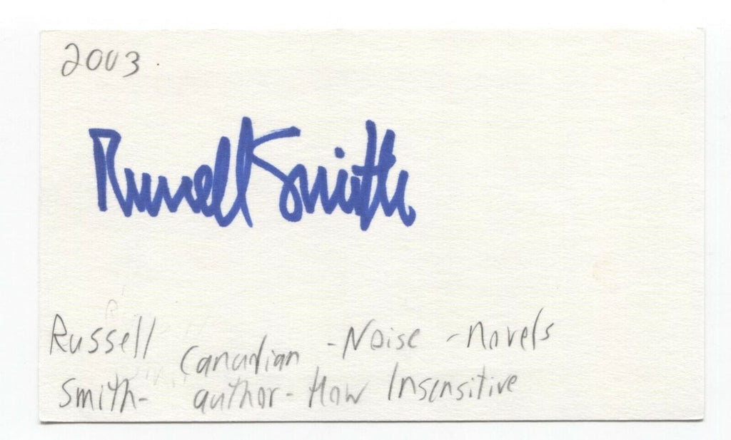 Russell Smith Signed 3x5 Index Card Autographed Signature Writer Author