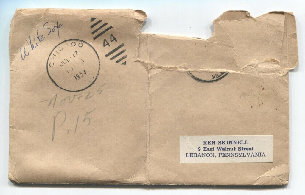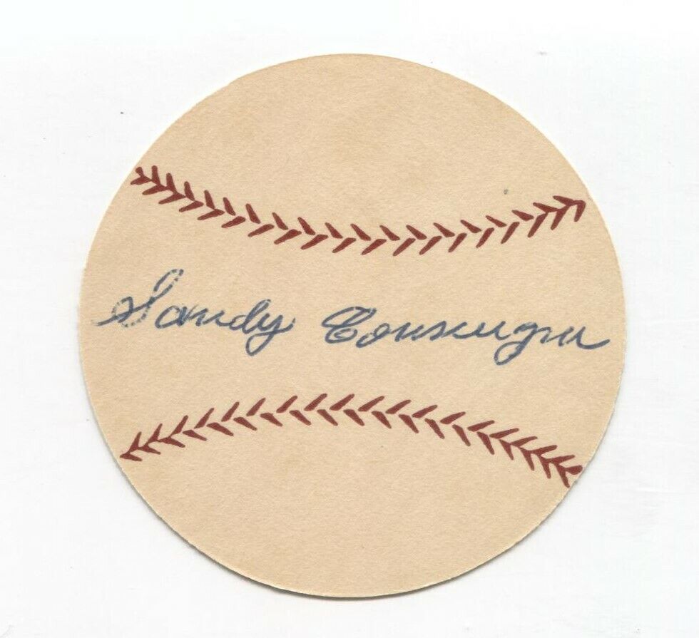 Up for sale is a signed thick paper stock baseball measuring approximately 2.5 inches in diameter, featuring an autograph of Sandy Consuegra.  The third image (not included with the item) shows the original mailing envelope the autograph was received in, postmarked from 1953.  This autograph was part of a large collection of over 700 vintage baseball autographs and memorabilia, all obtained between 1952 and 1954 by the same original owner.