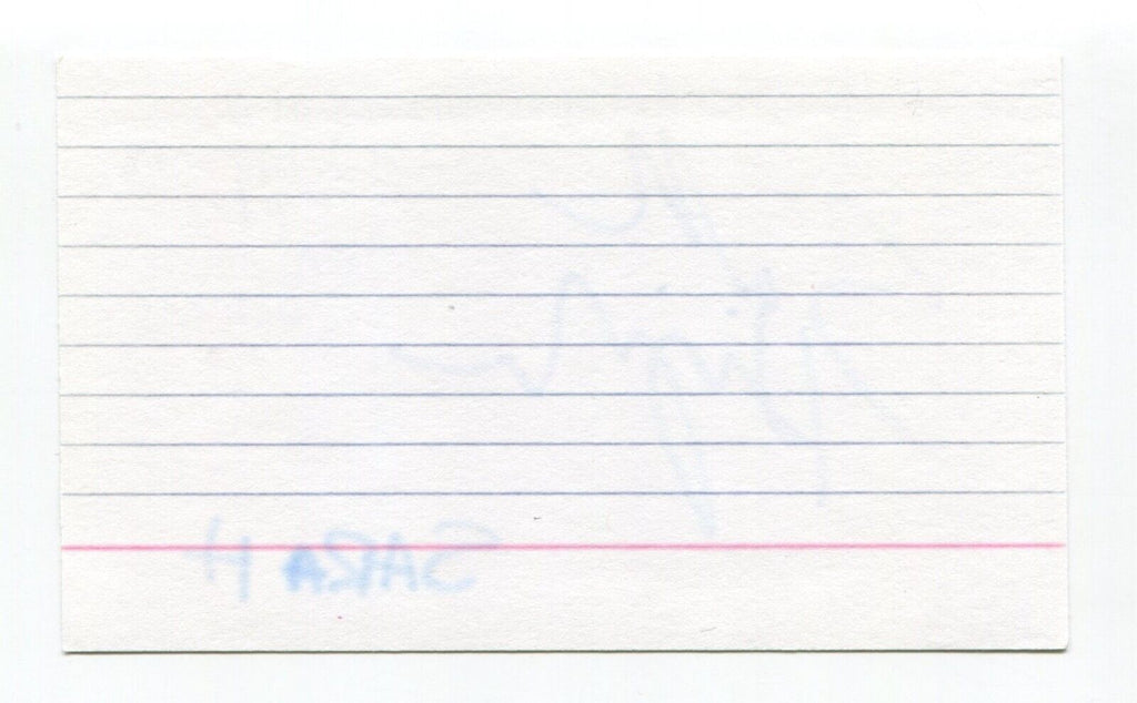 Up for sale is an autographed 3x5 index card, boldly signed by actress Sarah Higgins. This autograph was part of an enormous collection of over 9000 in person collected signatures, all acquired in person by the great Glenn Marshall.