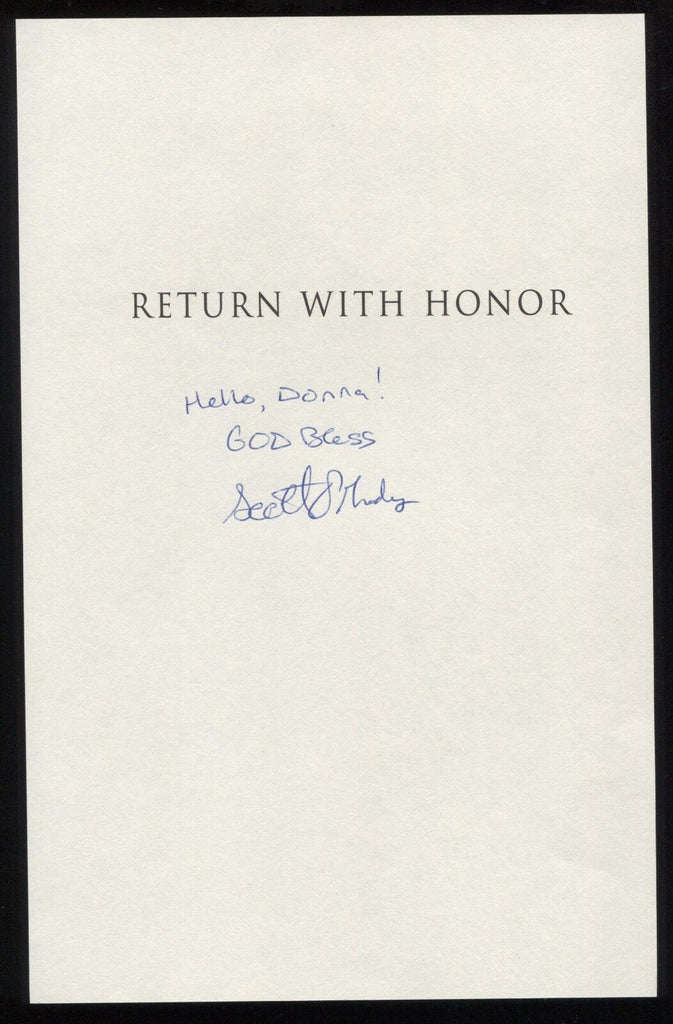 Up for sale is a vintage signed book page, boldly autographed by Scott O'Grady.   Beautifully signed in pen, this would be a great example for your collection, and would fit well as a cut autograph to be matted and framed with a vintage photograph.  Please note that this item is a signed page that was removed from a book by the previous owner.  Autograph was part of a single owner collection of over 300 autographs that I was fortunate enough to purchase in it's entirety.