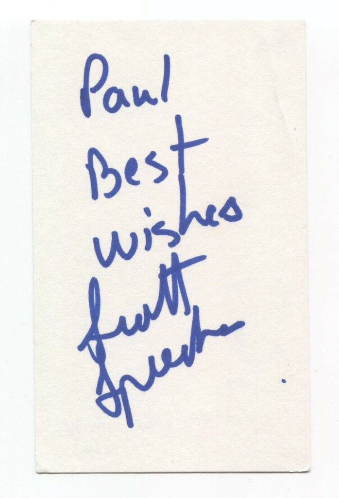 Up for sale is an autographed 3x5 index card, boldly signed by Scott Speedman. Autograph was part of an enormous collection of over 9000 in person collected signatures.
