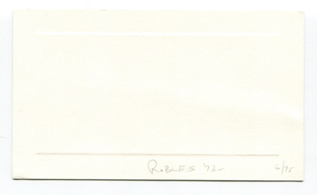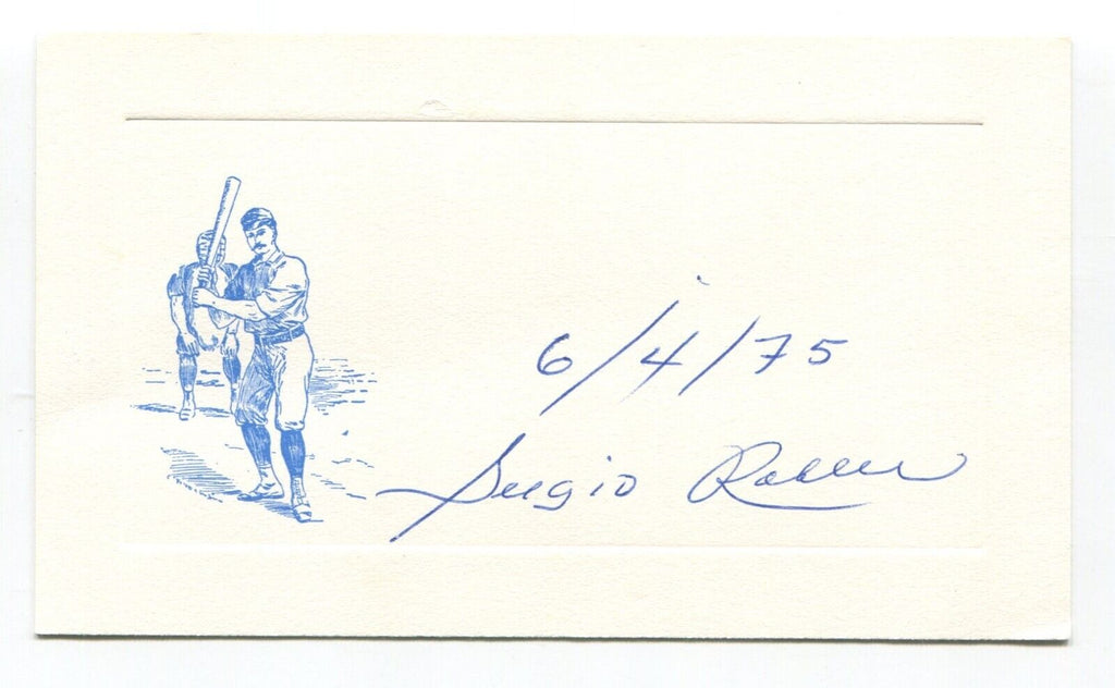 Up for sale is an autographed approximately 3.5 x 5.5 inch card, boldly signed by baseball player Sergio Robles. Just a great looking autograph that will display nicely.   Autograph was acquired by renowned autograph collector Roger Harris.
