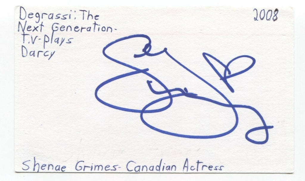 Shenae Grimes Signed 3x5 Index Card Autograph Signature Actress Degrassi