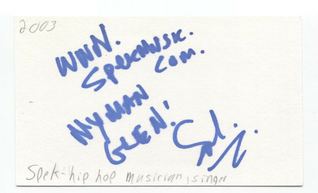 Spek Signed Index 3x5 Card Autographed Signature Singer Musician