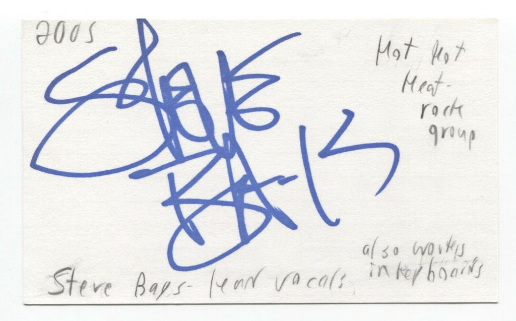 Up for sale is an autographed 3x5 index card, boldly signed Steve Bays, lead singer of Hot Hot Heat. Autograph was part of an enormous collection of over 9000 in person collected signatures that I was fortunate to purchase in it's entirety.