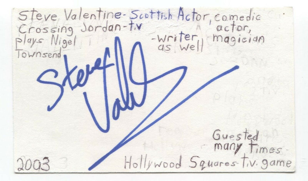 Steve Valentine Signed 3x5 Index Card Autographed Signature Crossing Jordan
