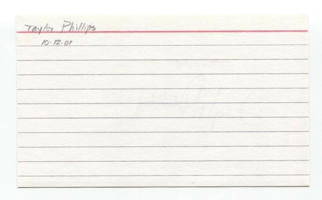 Taylor Phillips Signed 3x5 Index Card Baseball Autographed Signature