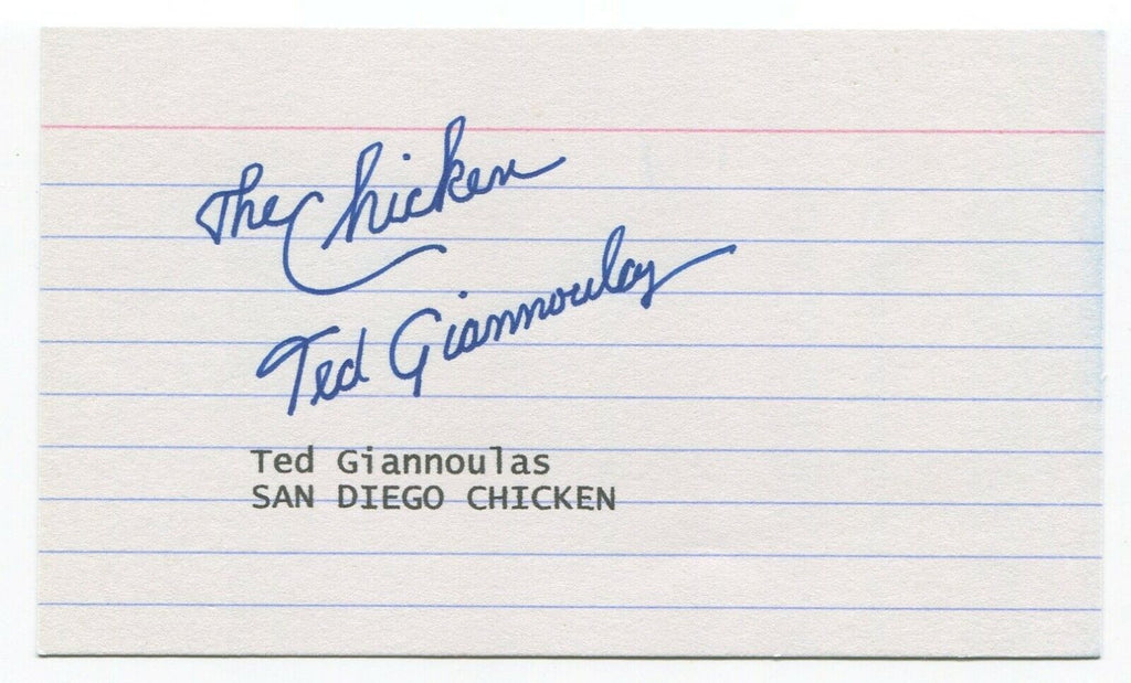 Ted Giannoulas Signed 3x5 Index Card Autographed Baseball San Diego Chicken