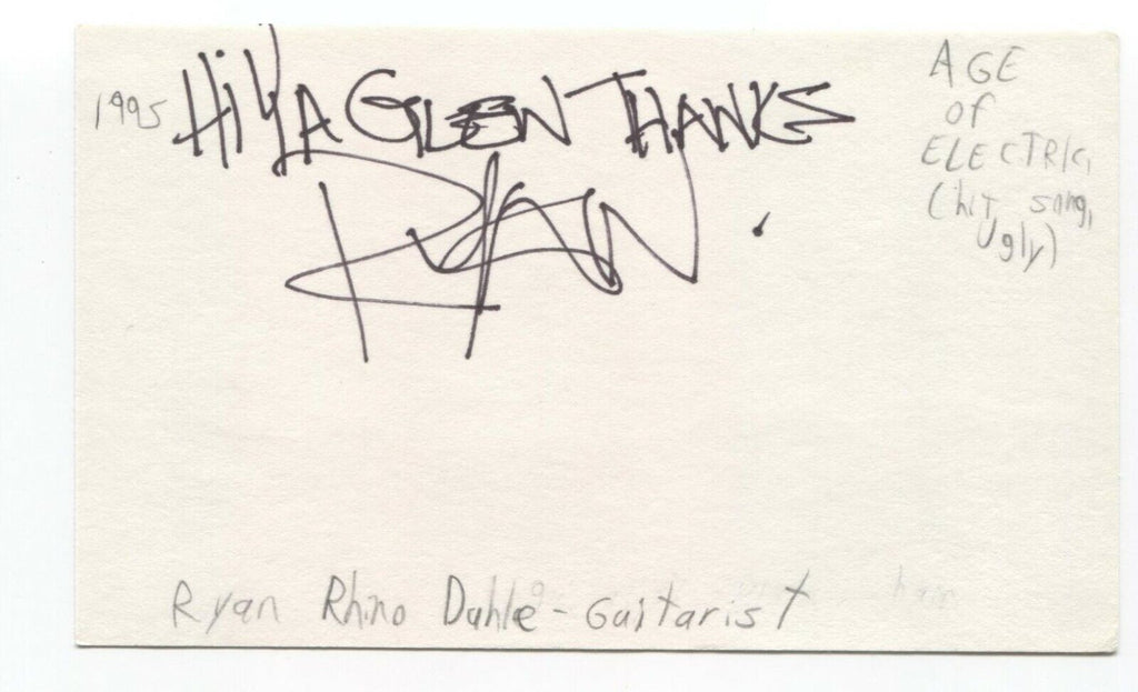 Up for sale is an autographed 3x5 index card, boldly signed by Ryan Dahle, of The Age of Electric.  Autograph was part of an enormous collection of over 9000 in person collected signatures.