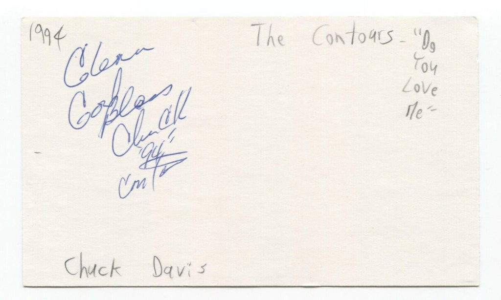 The Contours - Charles Davis Signed Index 3x5 Card Autographed Signature Chuck