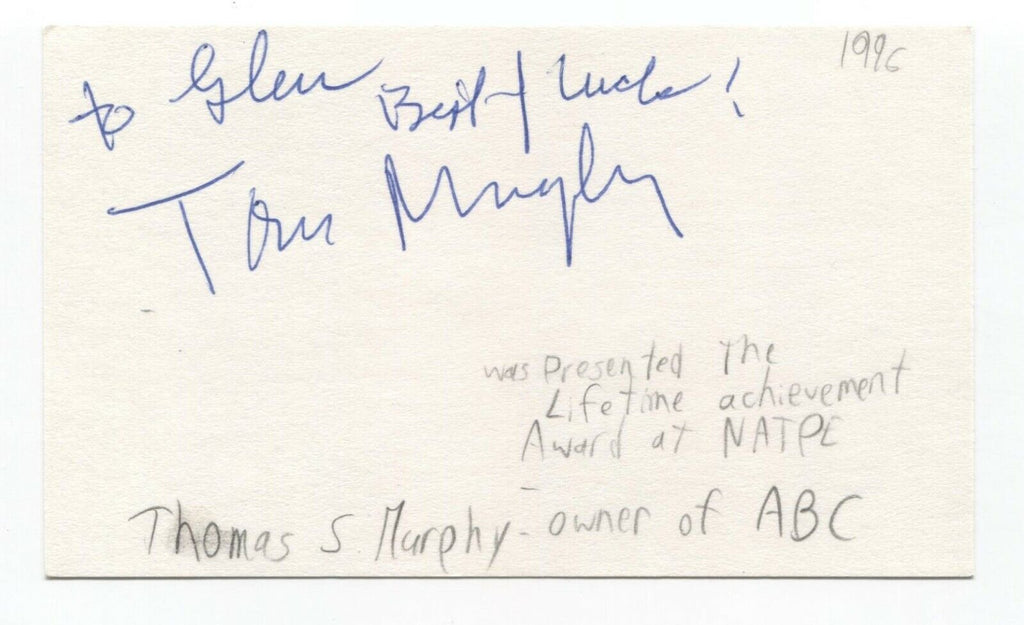 Thomas S. Murphy Signed 3x5 Index Card Autographed Signature ABC Owner CEO