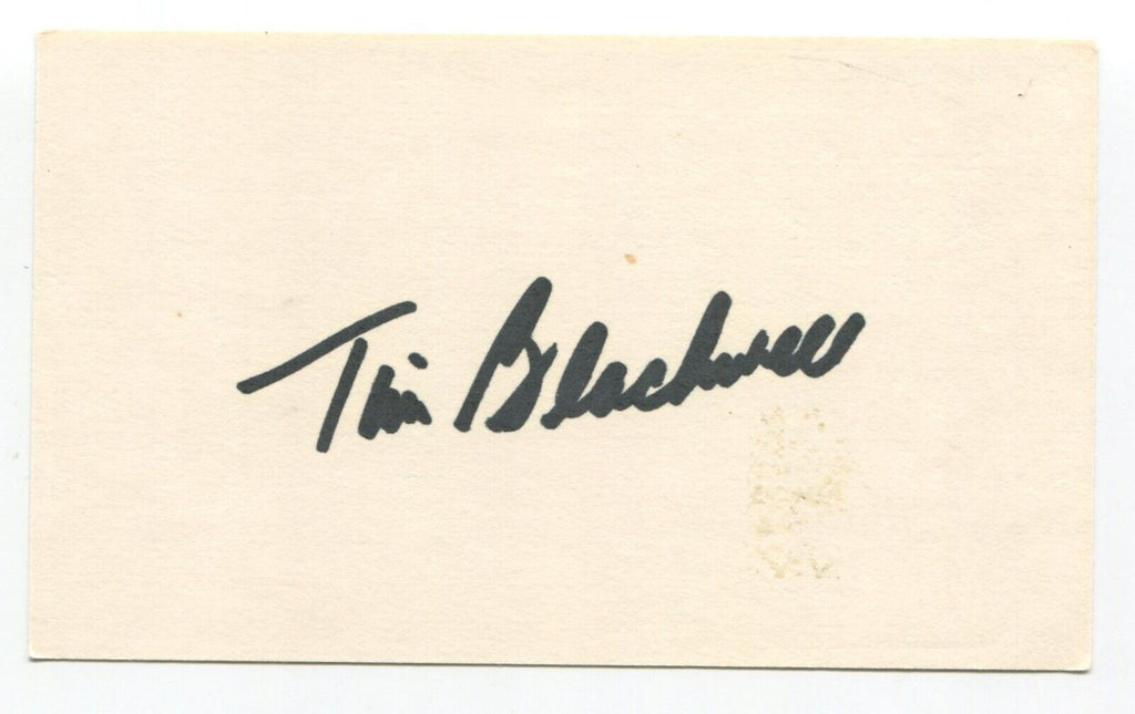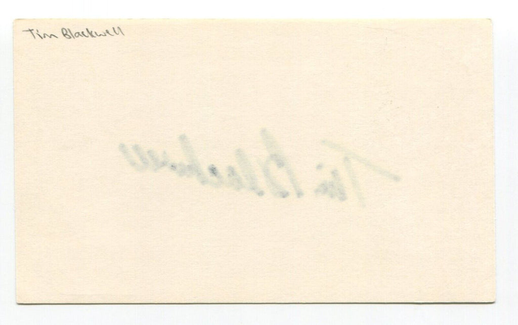 Up for sale is an autographed cut adhered to a 3x5 index card, signed by baseball player Tim Blackwell. Just a great looking autograph that will display nicely. Autograph was part of the JP collection consisting of over 350 autographed index cards.