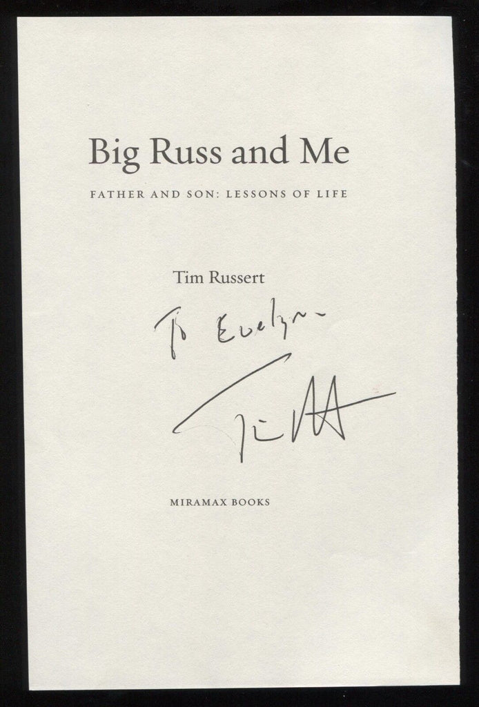 Up for sale is a vintage signed book page, boldly autographed by Tim Russert. Beautifully signed in pen, this would be a great example for your collection, and would fit well as a cut autograph to be matted and framed with a vintage photograph. Please note that this item is a signed page that was removed from a book by the previous owner. Autograph was part of a single owner collection of over 300 autographs that I was fortunate enough to purchase in it's entirety.