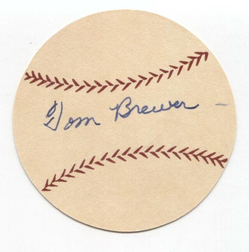 Up for sale is a signed thick paper stock baseball measuring approximately 2.5 inches in diameter, featuring an autograph of Tom Brewer. The third scan (not included with the item) shows the original mailing envelope the signature was received in, postmarked from 1953.  This autograph was part of a large collection of over 700 vintage baseball autographs and memorabilia, all obtained between 1952 and 1954 by the same original owner.