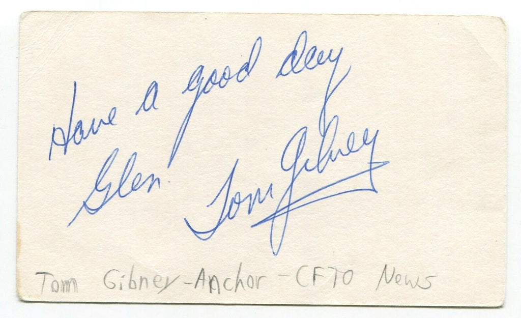 Tom Gibney Signed 3x5 Index Card Autographed Signature Canadian News Anchor