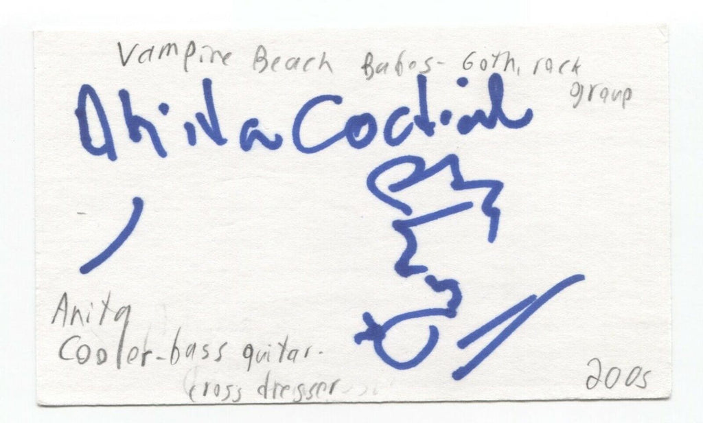 Vampire Beach Babes - Anita Cocktail - Signed Index 3x5 Card Autographed Band
