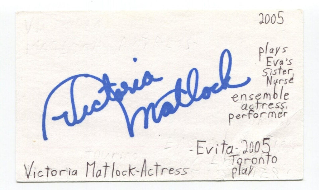 Victoria Matlock Signed 3x5 Index Card Autographed Actress Wicked Evita