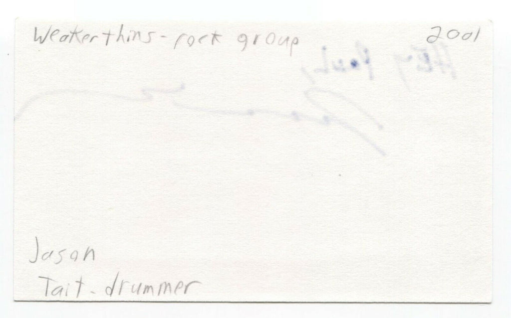 Up for sale is an autographed 3x5 index card, boldly signed by Jason Tait, of Weakerthans. Autograph was part of an enormous collection of over 9000 in person collected signatures.